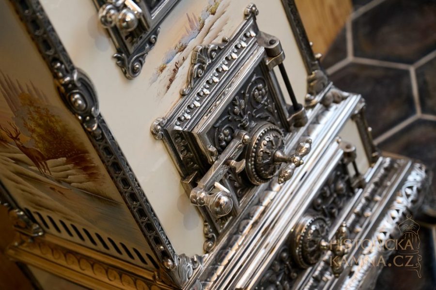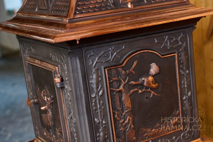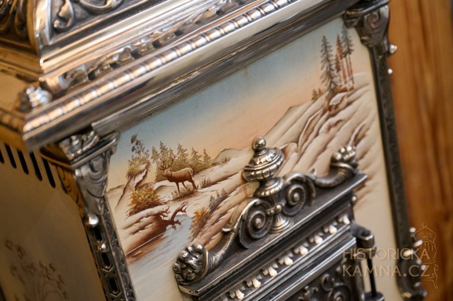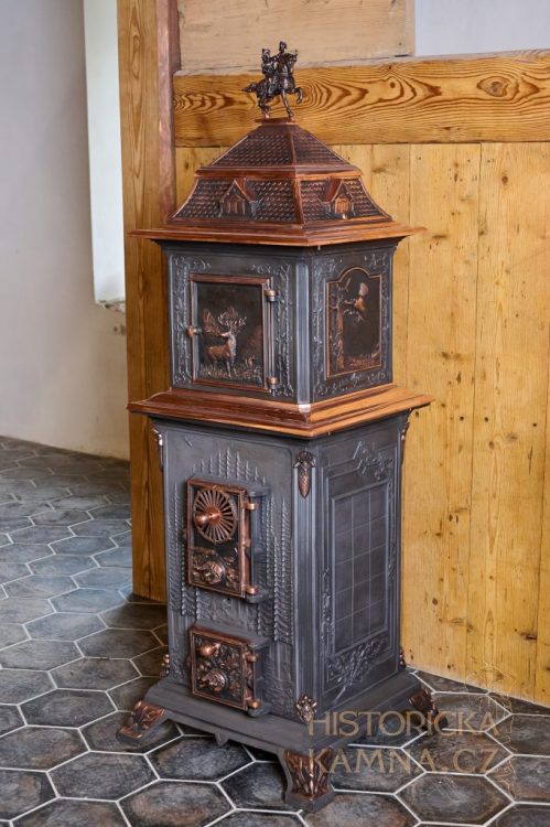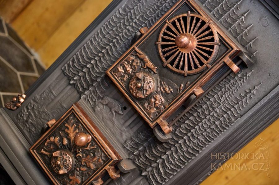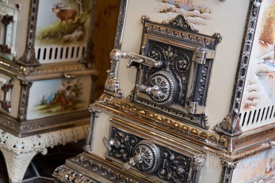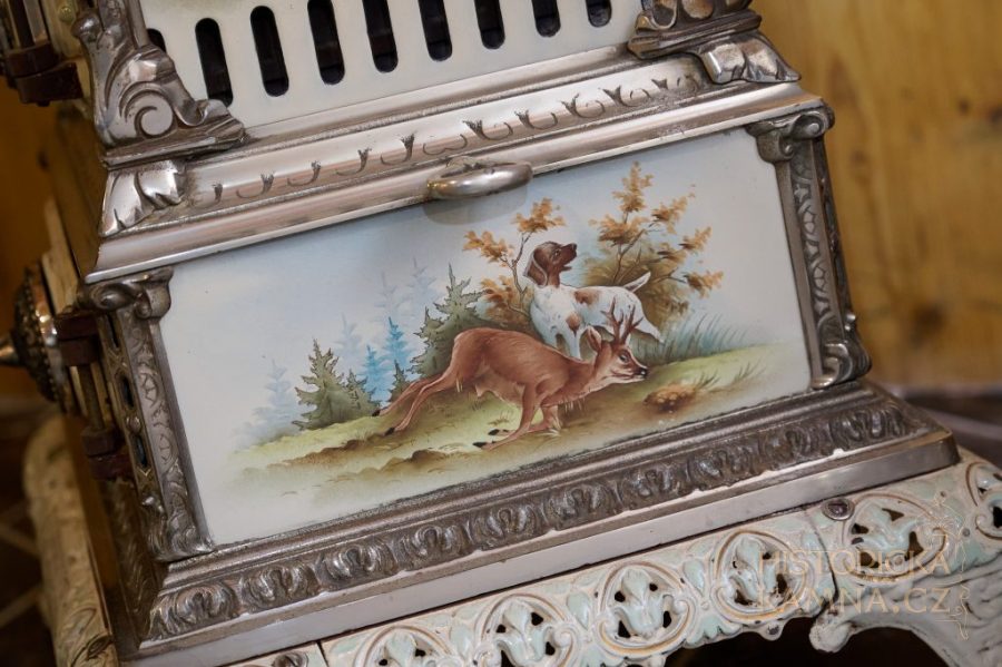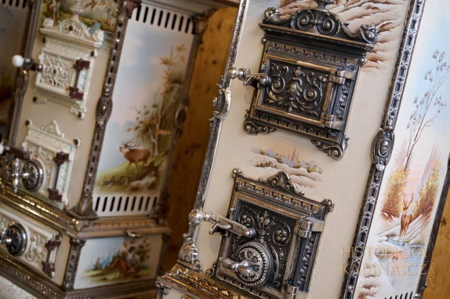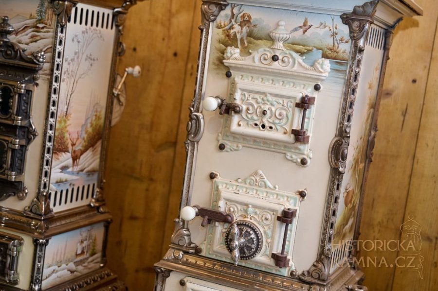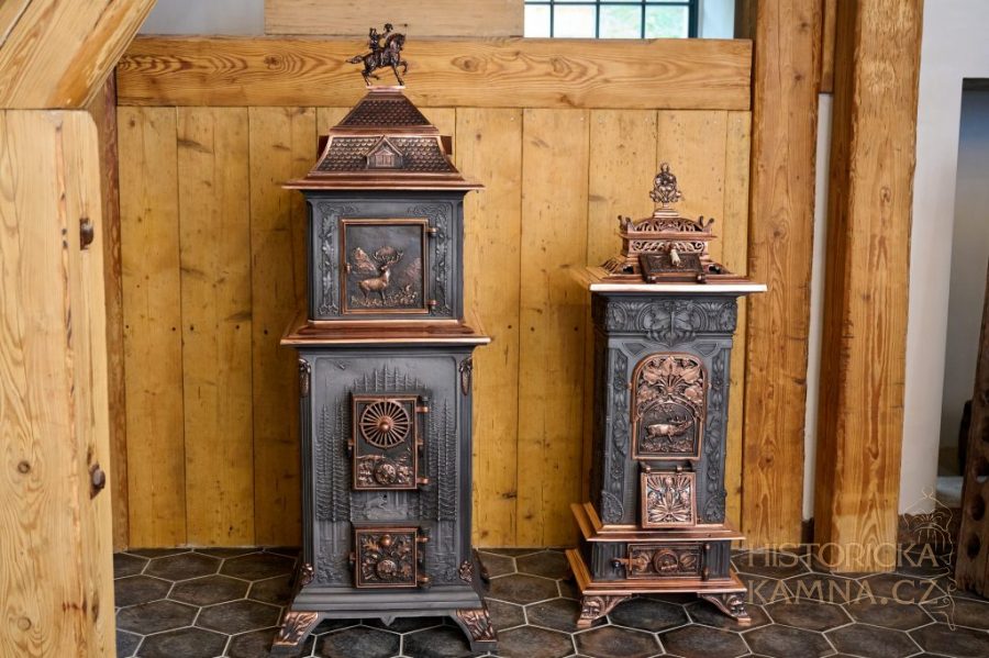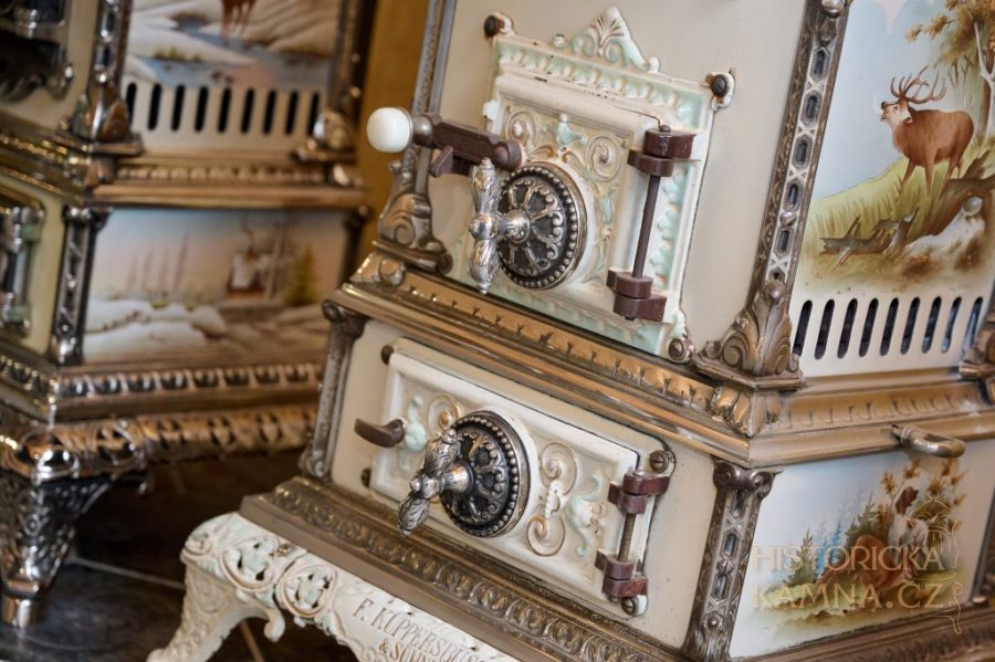 Dnes Vám představíme sérii luxusních kamen s loveckou tématikou od fy Kuppersbusch und Sohne, Schalke hned ve třech velikostech. Musíme se trochu pochválit. Vzácné jsou všechny, ale největší provedení je naprostý majstrštyk. Bylo to luxusní zboží již jako nové a z těch nízkých počtů dochovaných kusů se z honosných vil a zámečků do prodeje již nedostávají. A také jsme jediní na světě, kde můžete vidět tyto kousky pohromadě. Žádné muzeum ani obchodník je nemá. Naposledy je bylo možno takto spolu vidět ve značkovém obchodě Kuppersbusch 120 let zpátky..