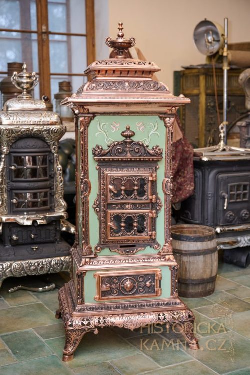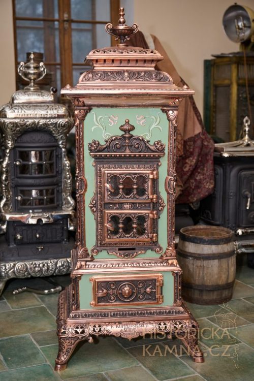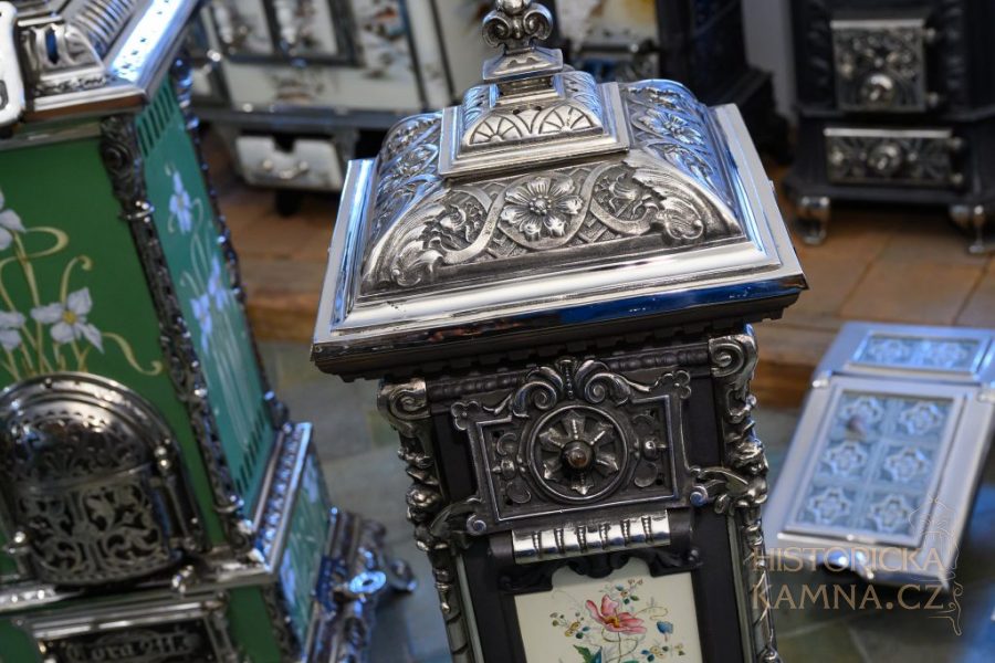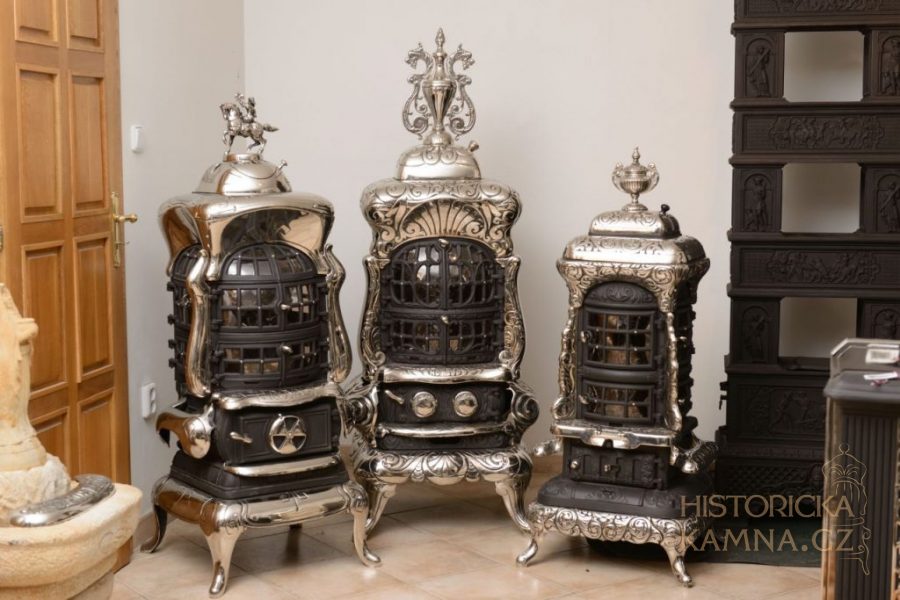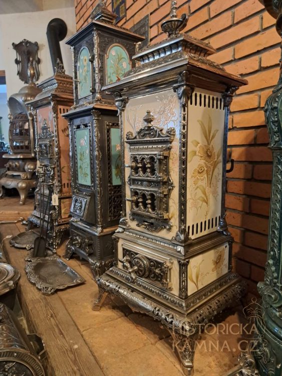 Dovolujeme si Vám představit hned čtyři zástupce z luxusní řady Phoenix od fy C. Riessner, Nurnberg. Naše kolekce obsahuje i raritní model No.:4, jejichž dochovaný počet se počítá na jednotky kusů. Dle našeho názoru se jedná o jednu z nejlíbivějších kolekcí dobové produkce. Další fotografií naleznete i na našem fb www.facebook.com/historickakamna.cz