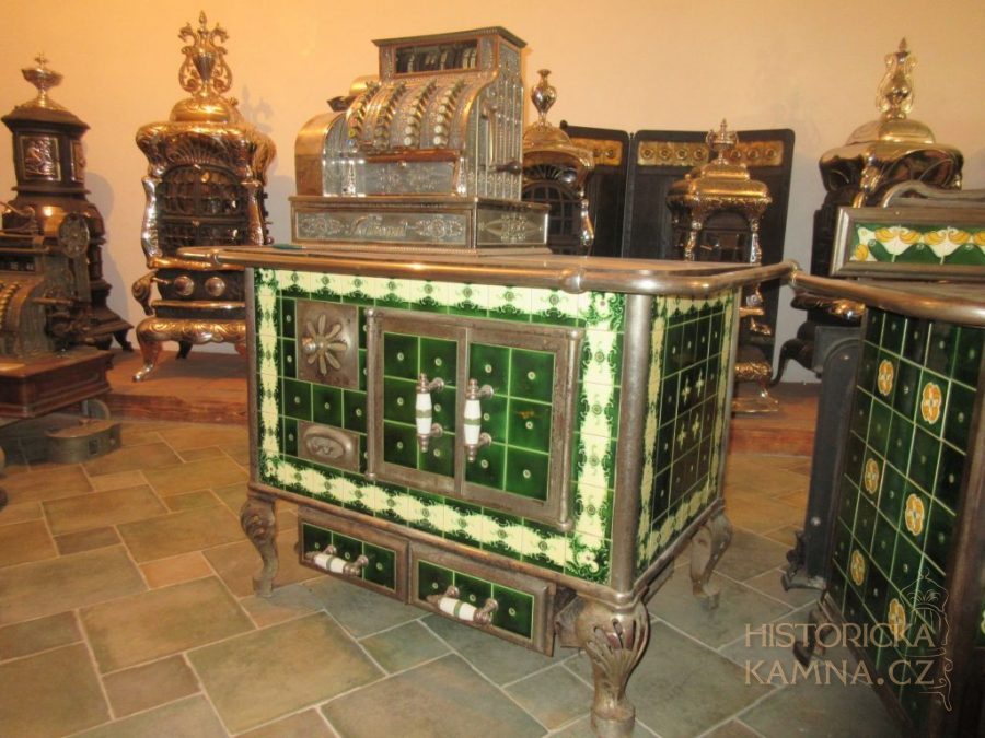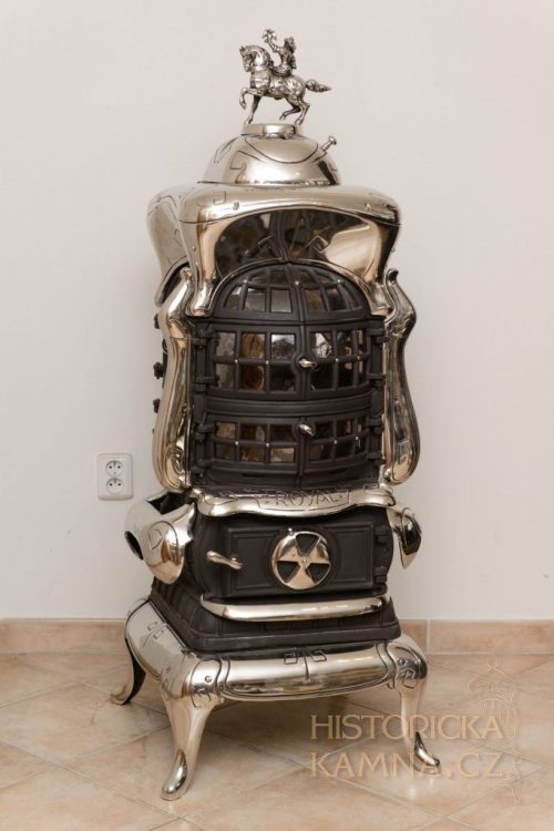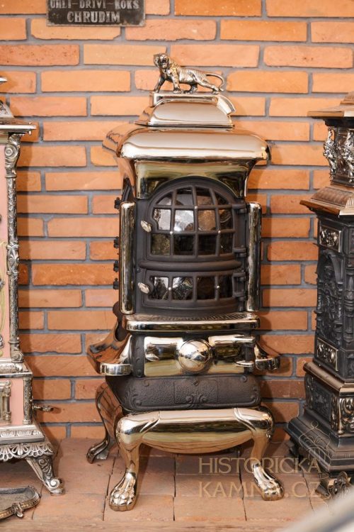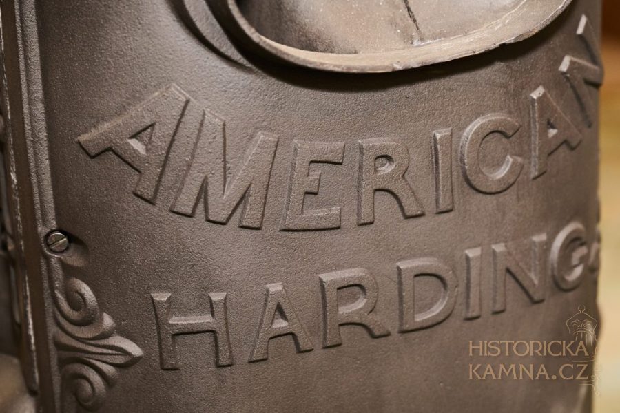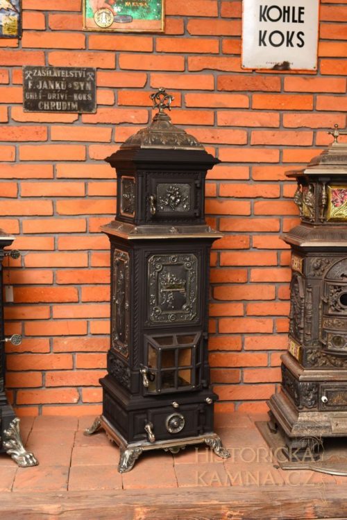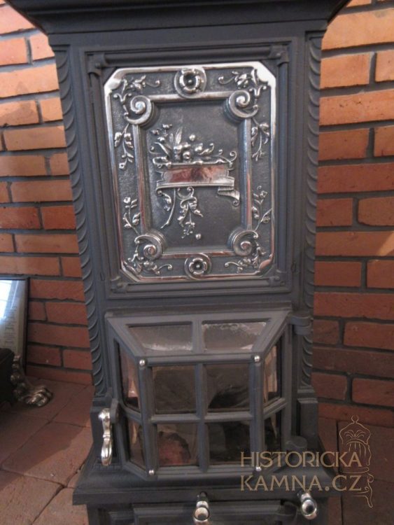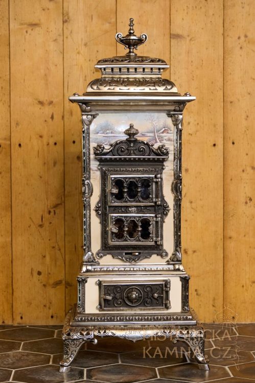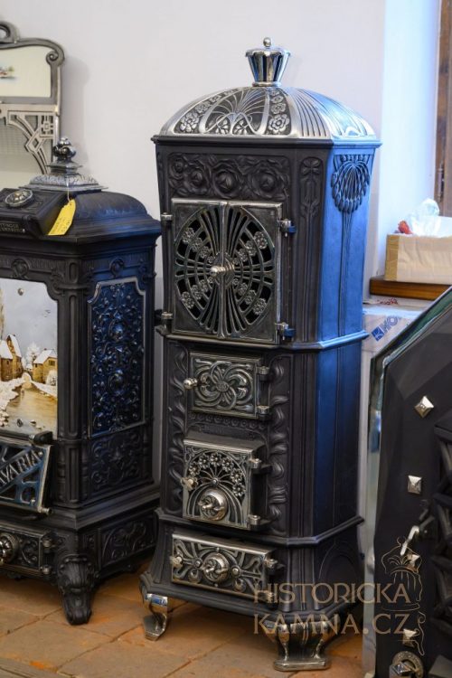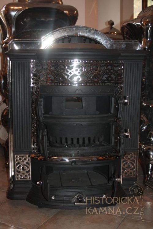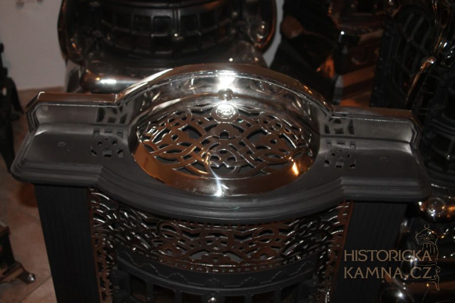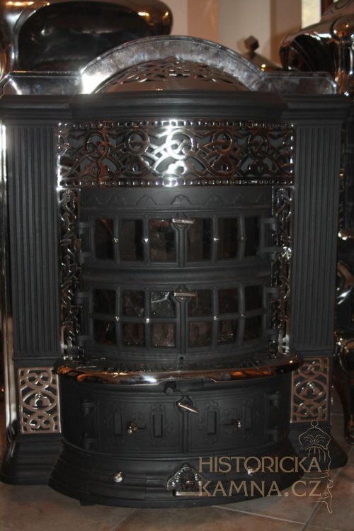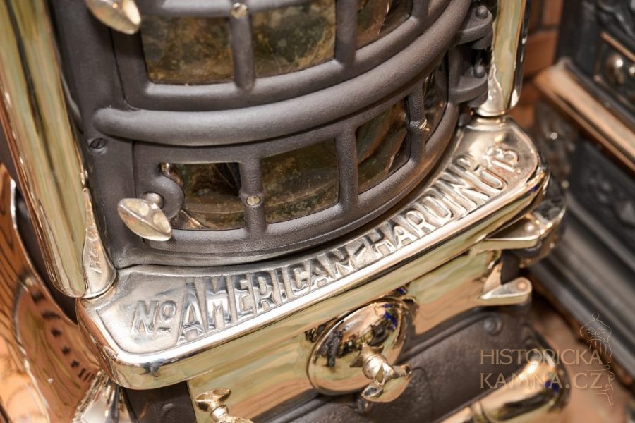 V Čechách vyráběná kamna amerického typu v málo vídané zajímavé art deco variantě.