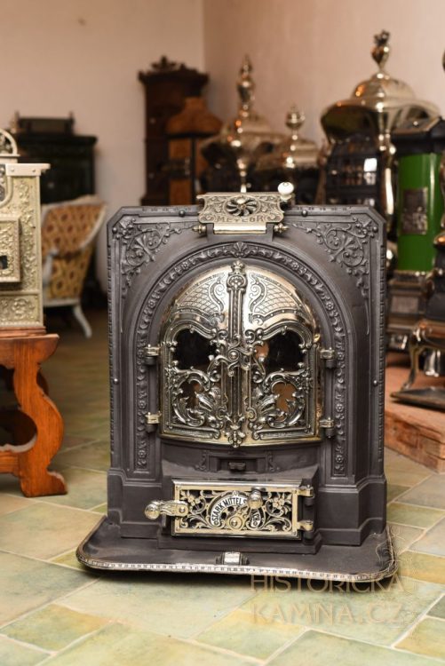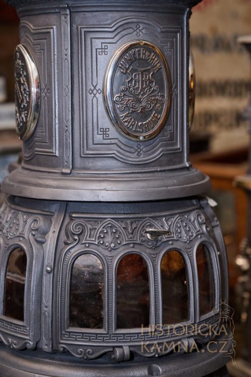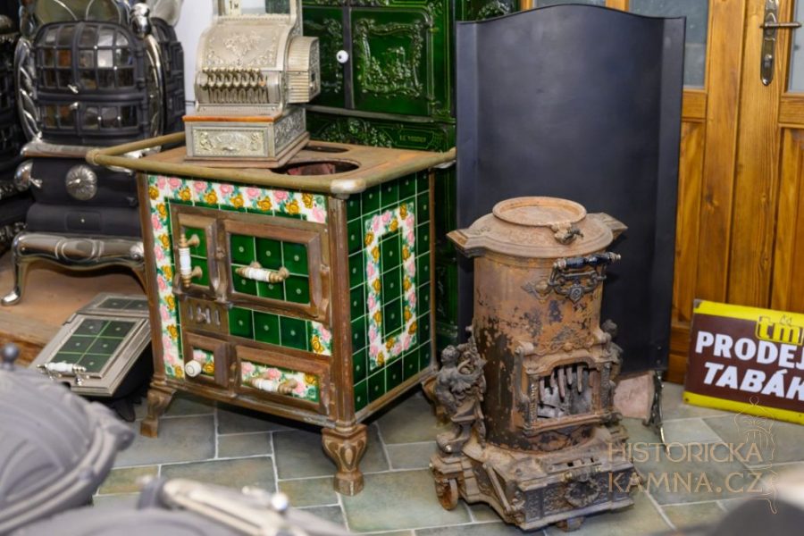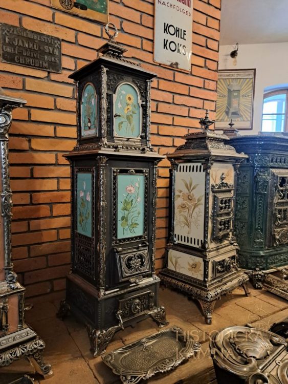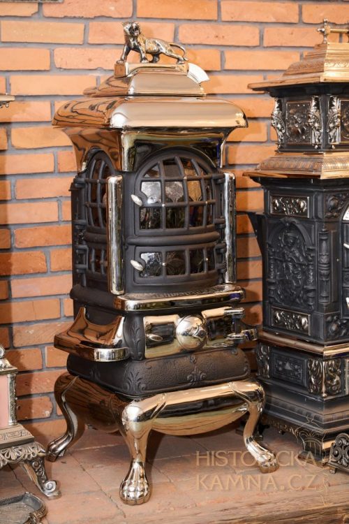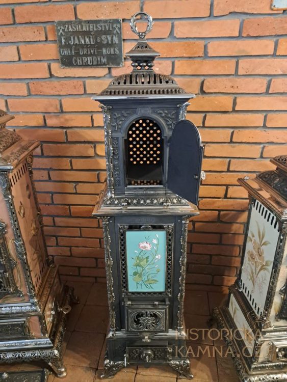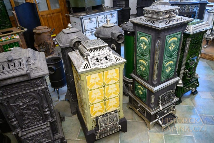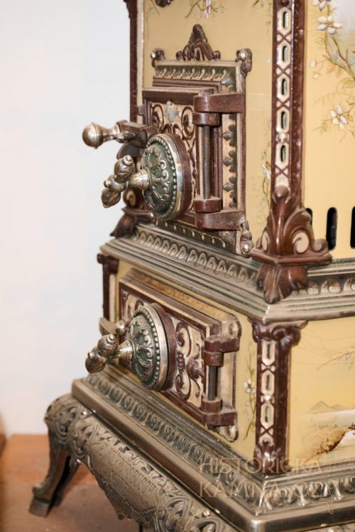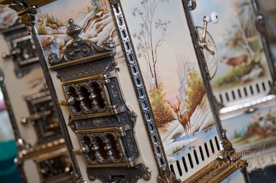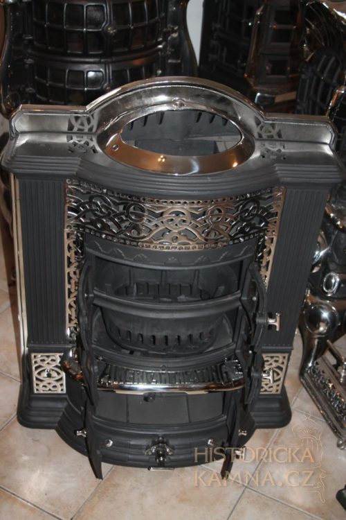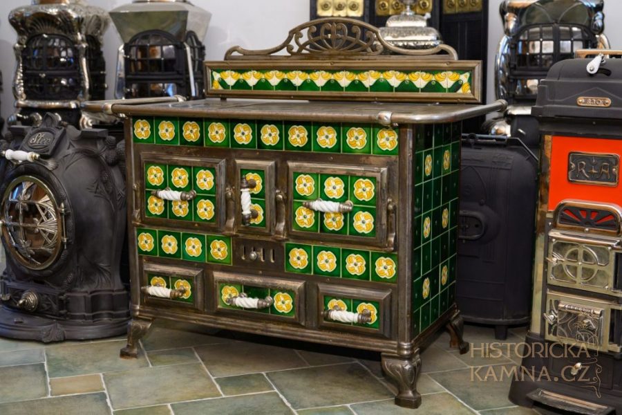 V Čechách vyráběná kamna amerického typu v málo vídané zajímavé art deco variantě.