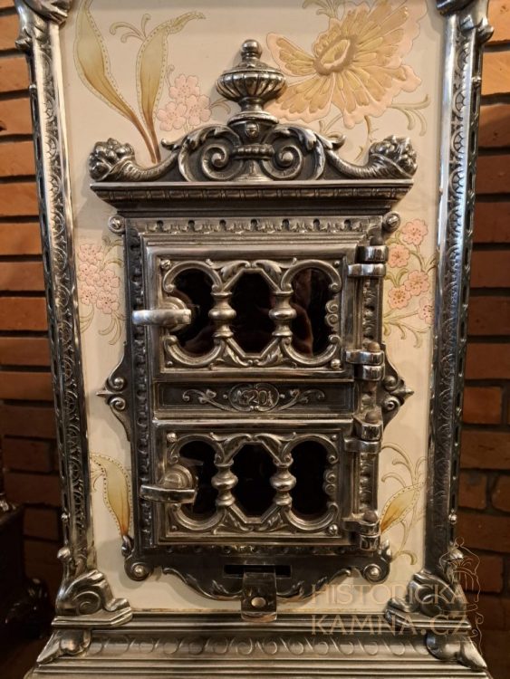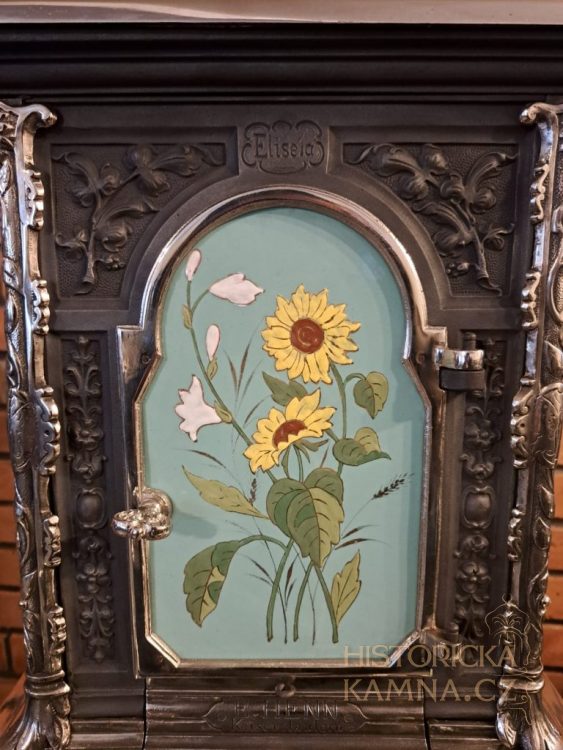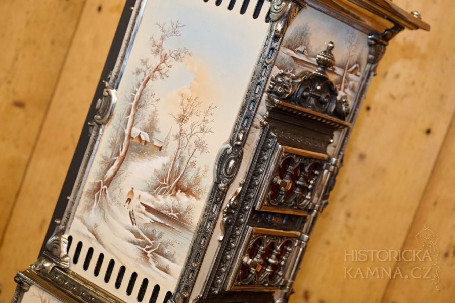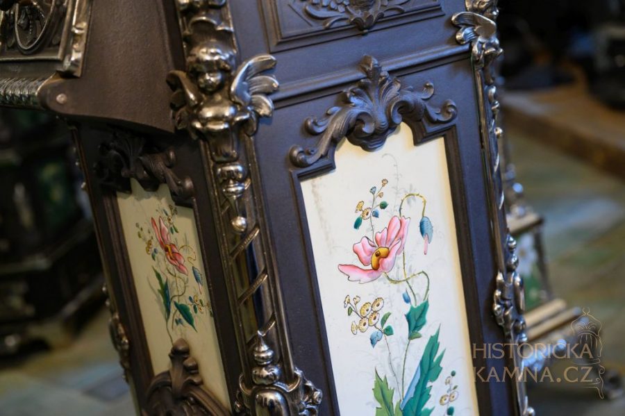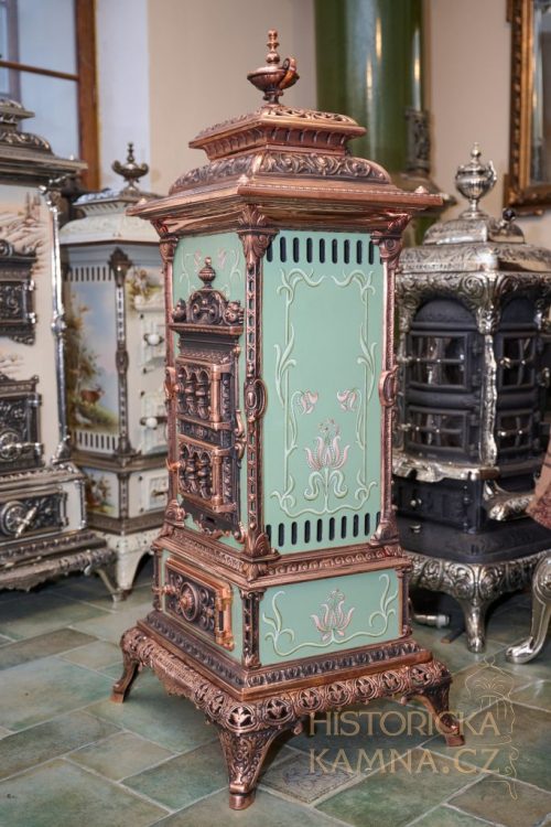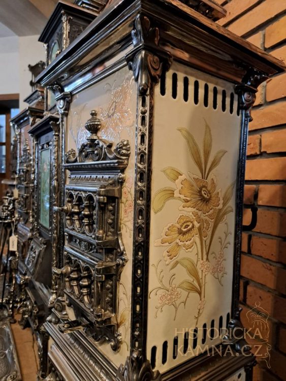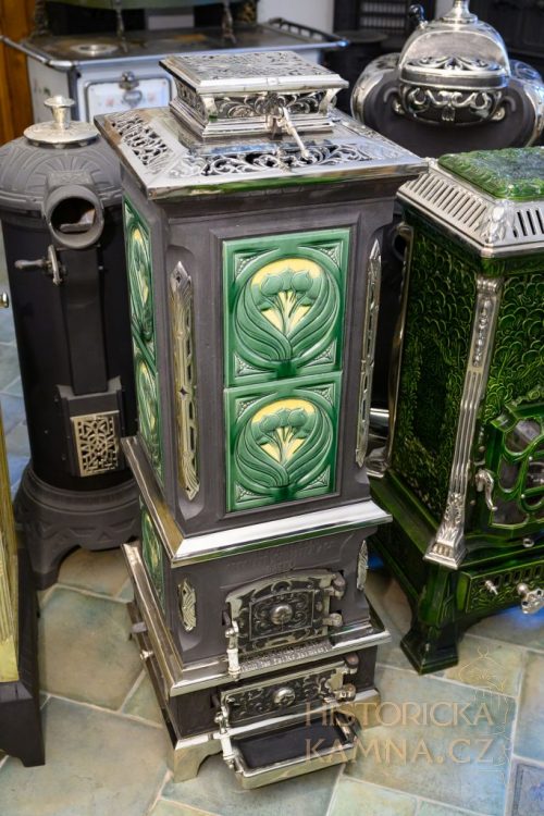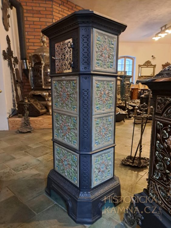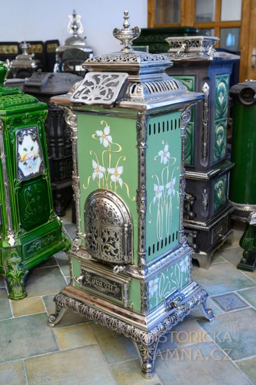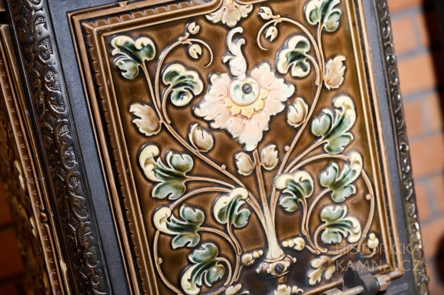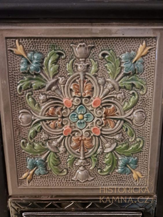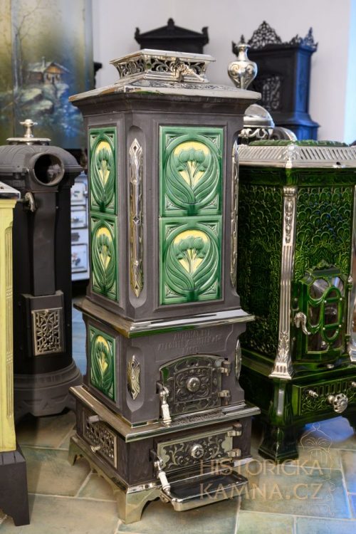 Secesní kamna od fy Gebruder Gienanth Eisenberg.