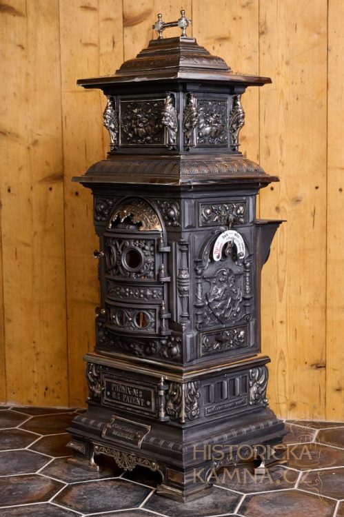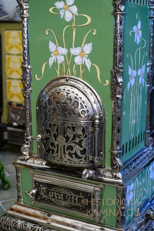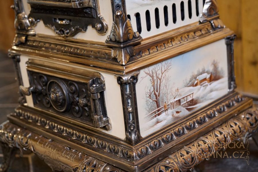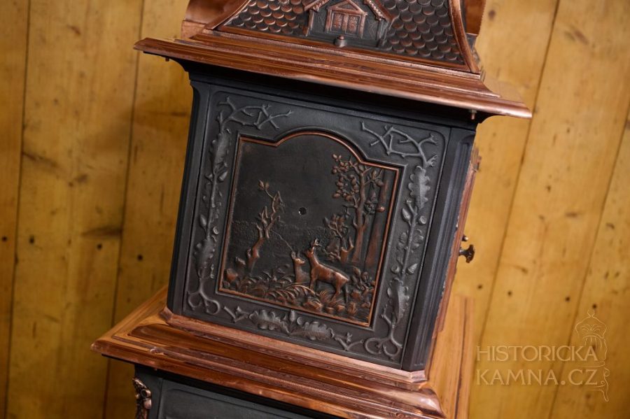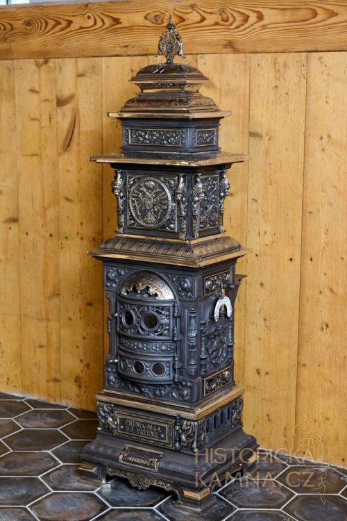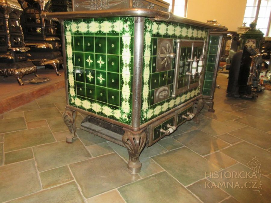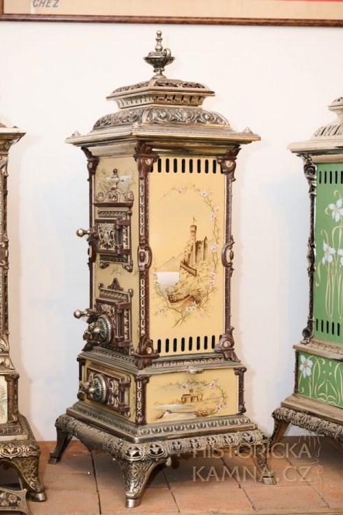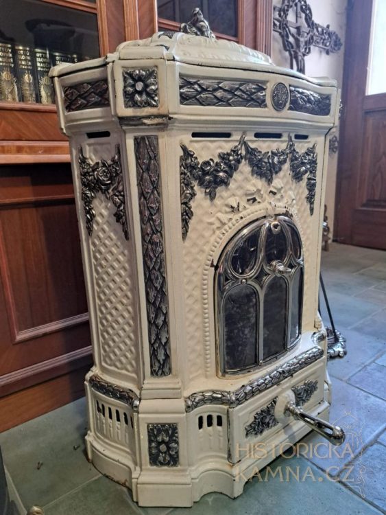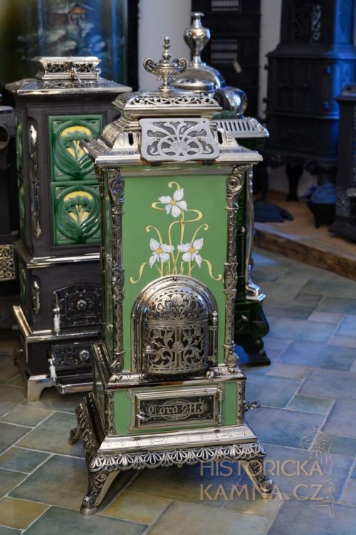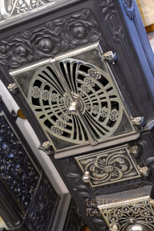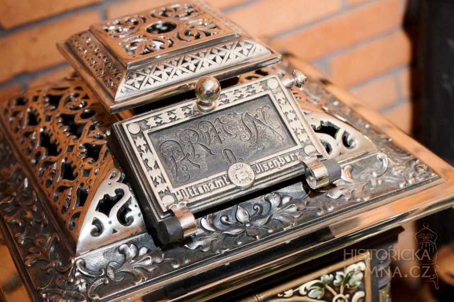 Secesní kamna od fy Gebruder Gienanth Eisenberg.