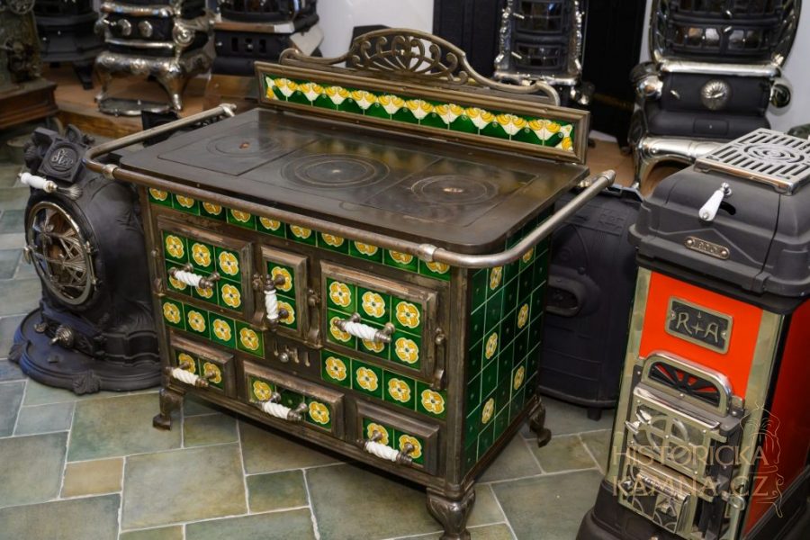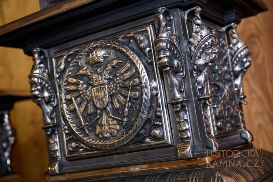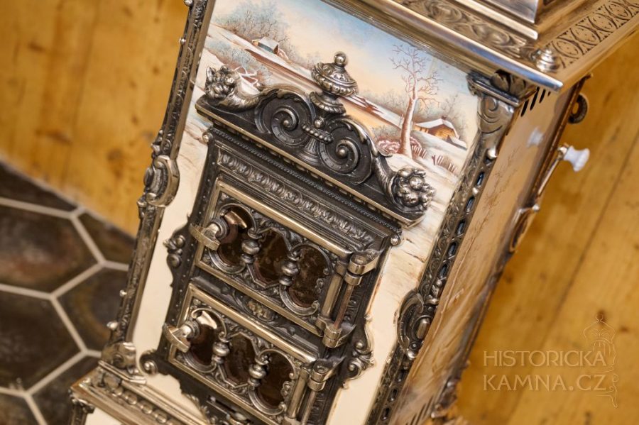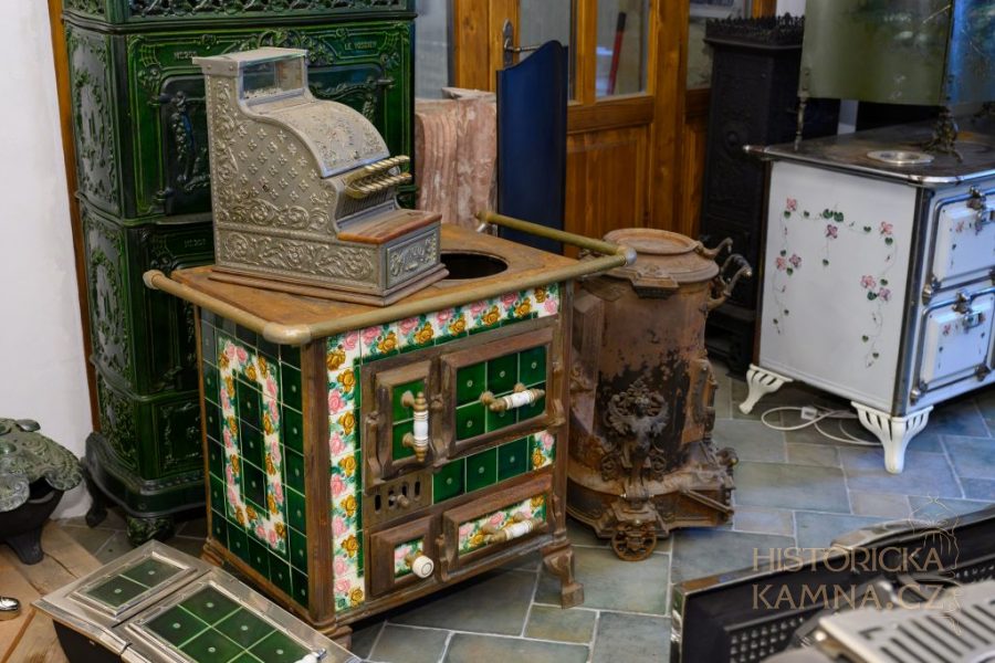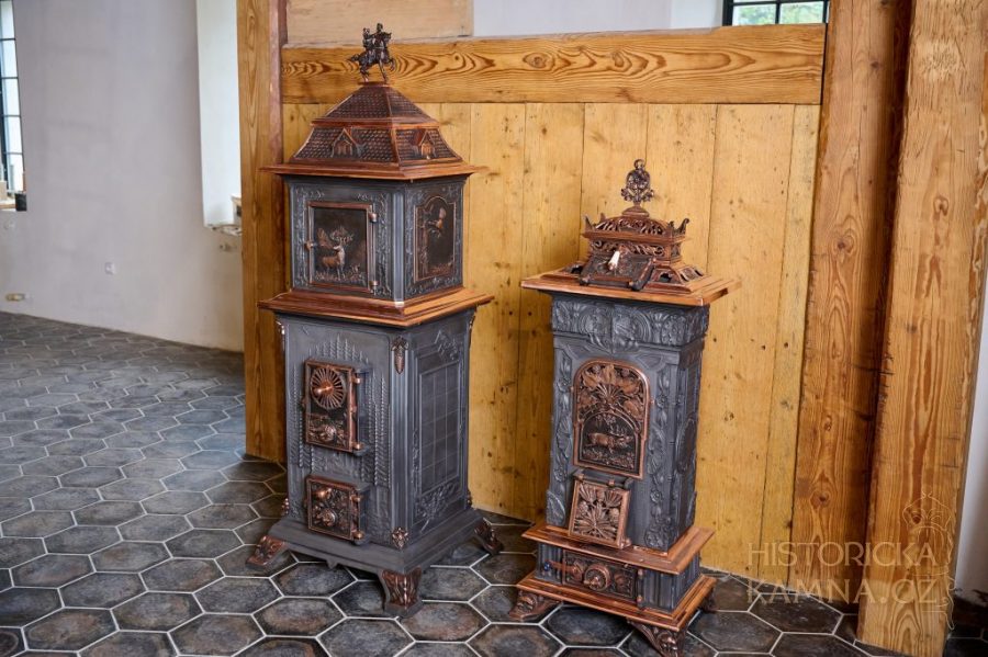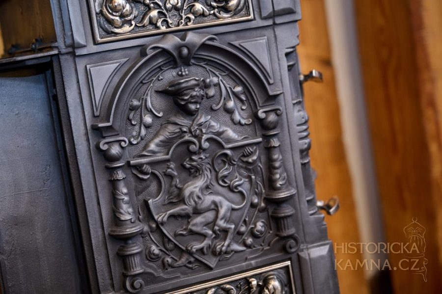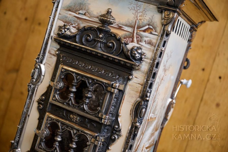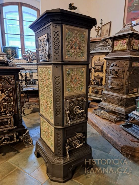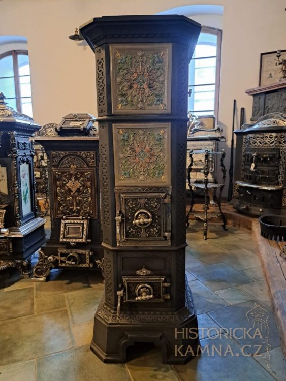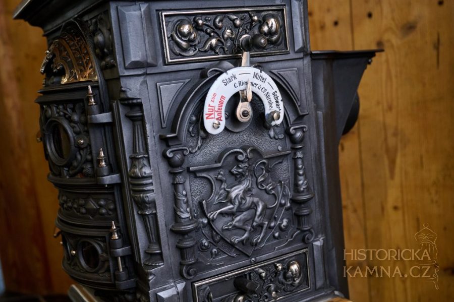 Secesní kamna od fy Gebruder Gienanth Eisenberg.