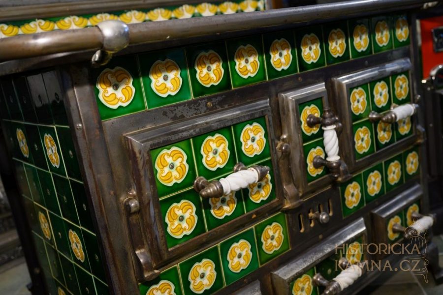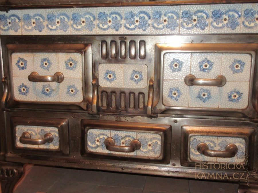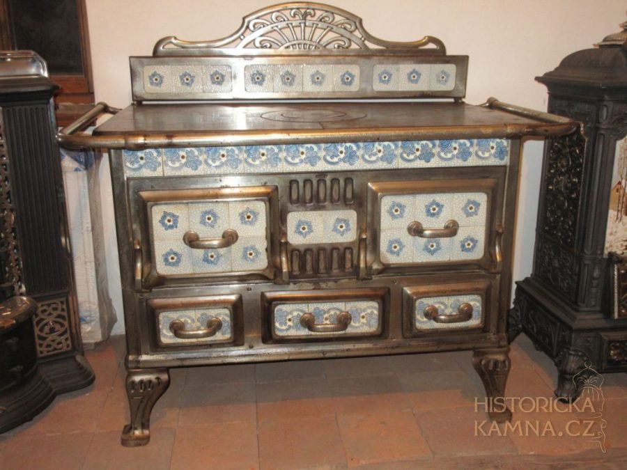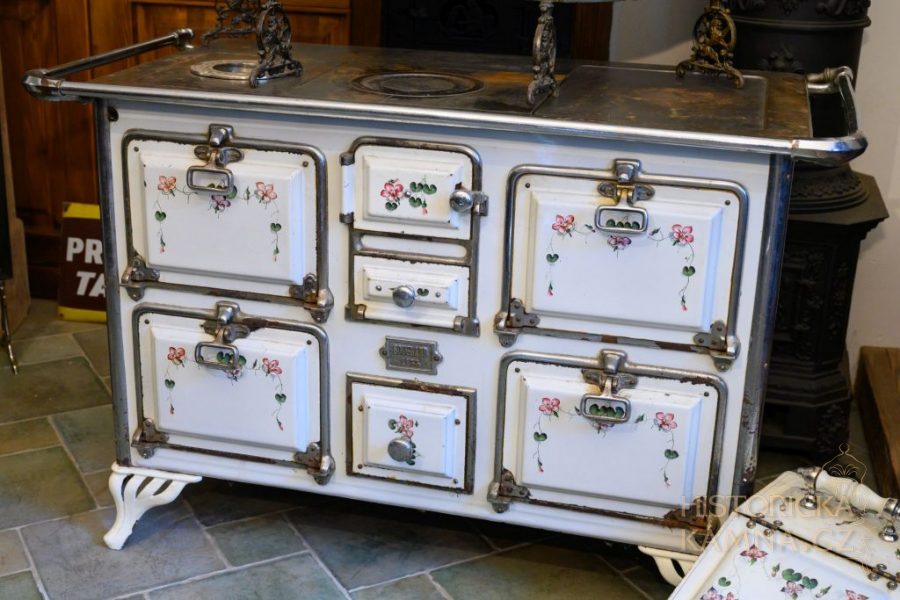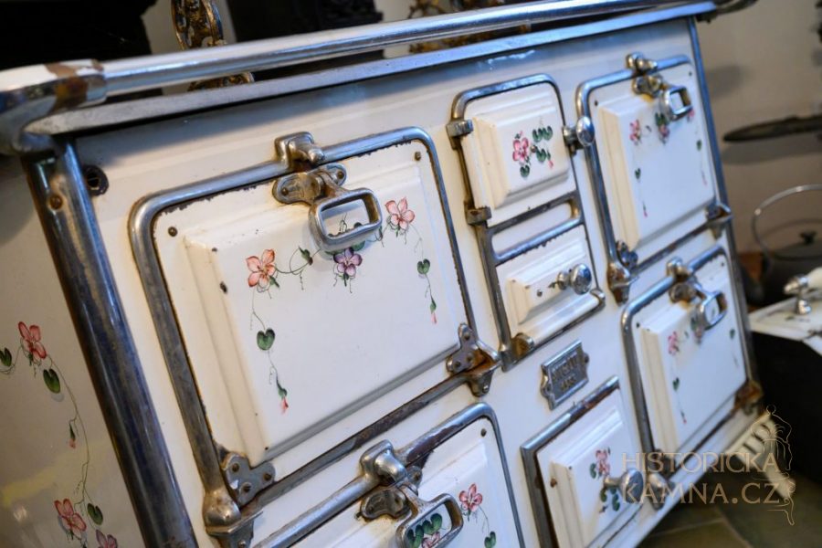 Německá kamna od firmy Kuppersbusch cca 1900-1905, perfektně zachovalá malovaná smaltovaná úprava.